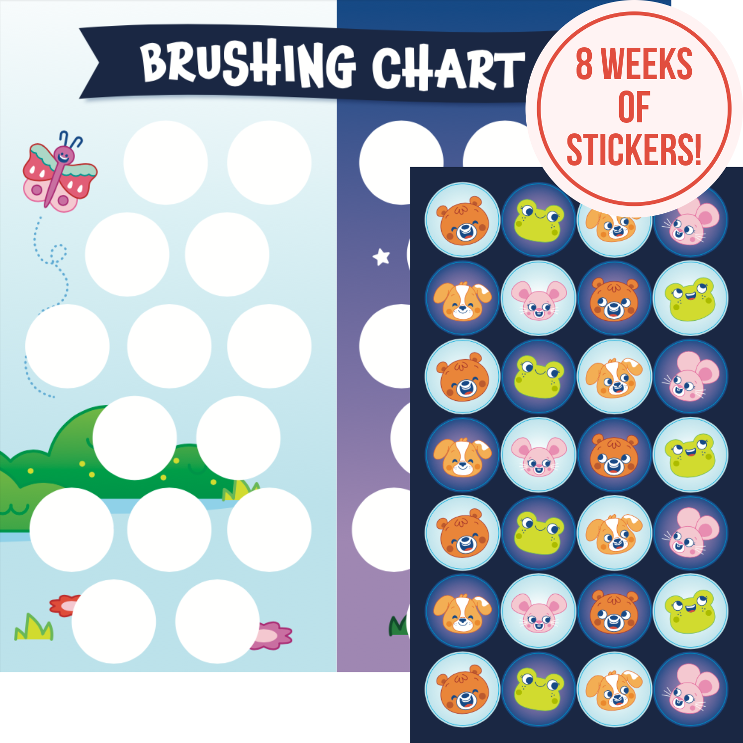 Our sticker chart add on is the perfect motivator for young children. We provide 8 weeks worth of stickers to track both morning and evening brushing.