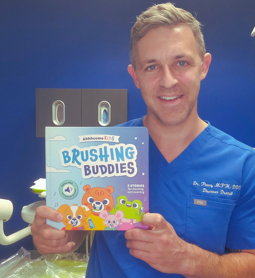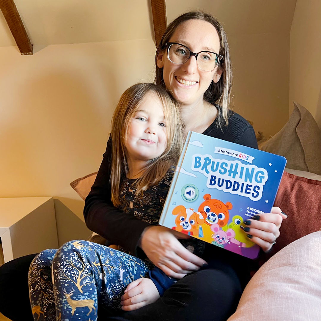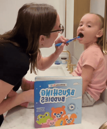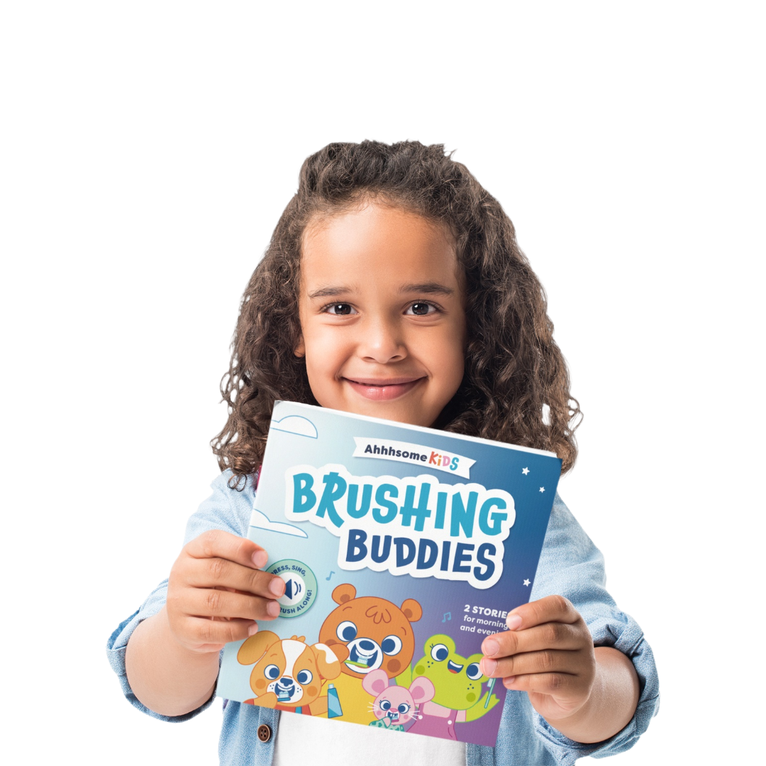 The Brushing Buddies book plays classic children's songs with ‘ahhh’ lyrics so kids sing along and keep mouths open.